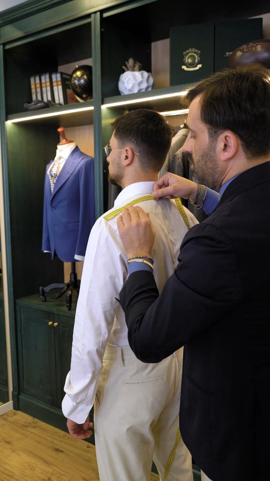 Realizzata a mano inserendo una leggerissima imbottitura nel punto di attaccatura della manica, la spalla con rollino regala rotondità e maggiore struttura alla parte superiore della giacca. Quel tocco artigianale che dona ad ogni abito su misura un vero gusto sartoriale.
