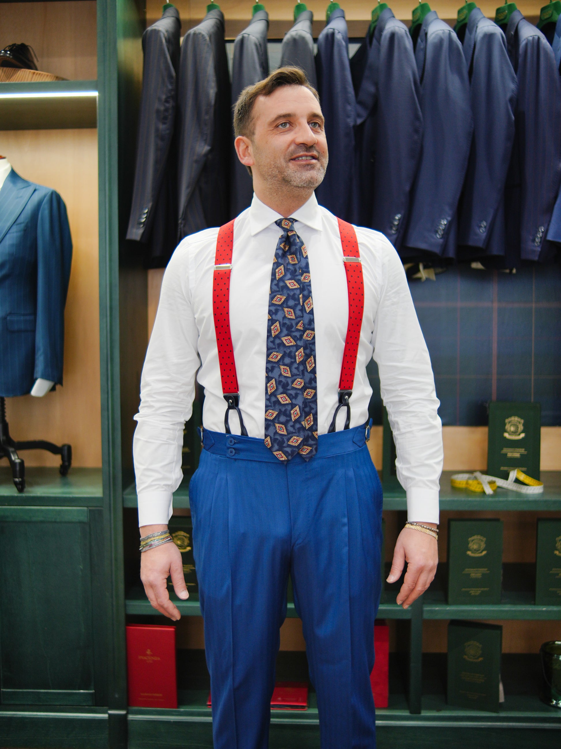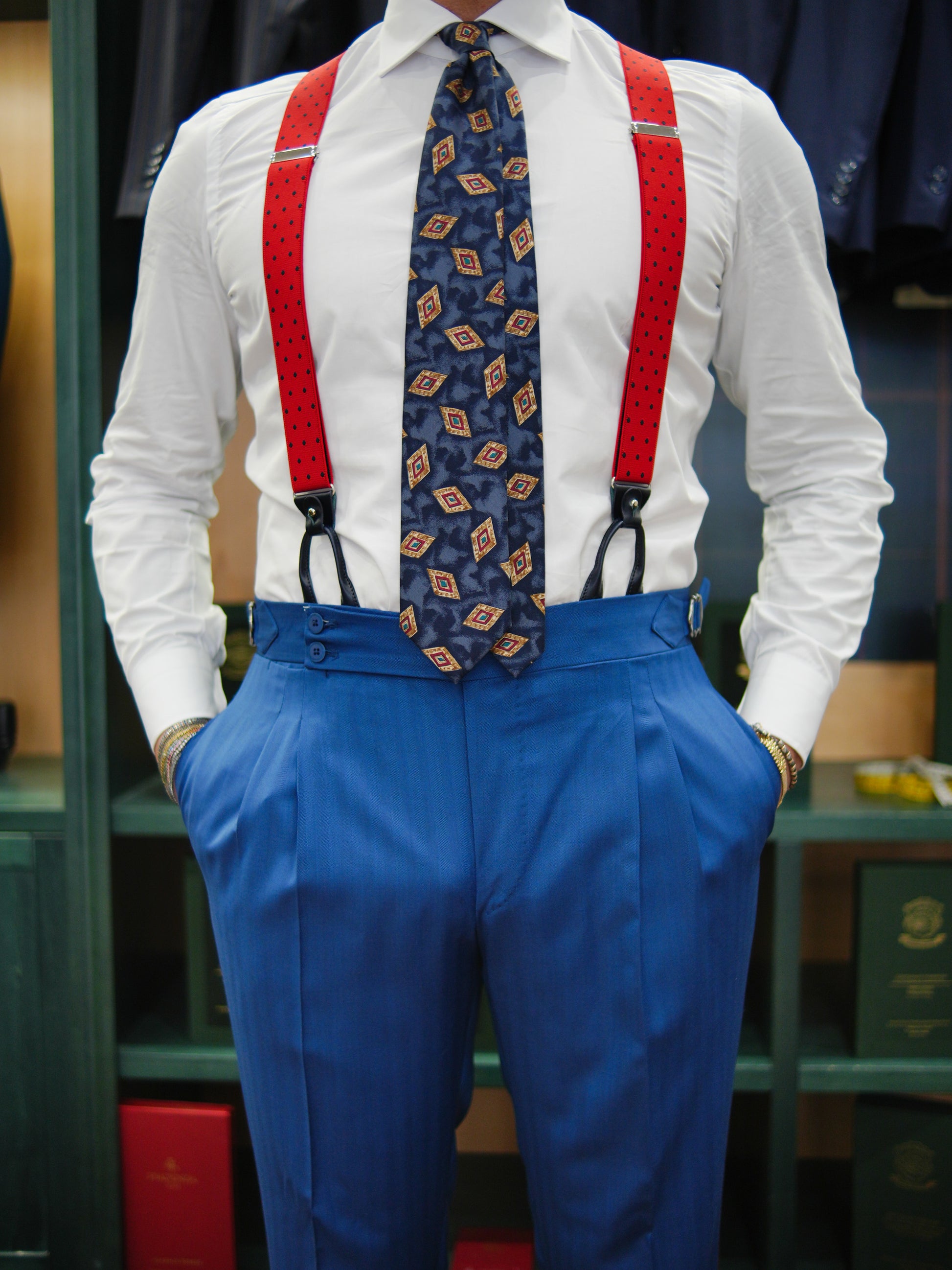 Interni in puro cotone con alla fodera e portamonete e spacchetto centrale con pancerina. Cintura sartoriale spezzettata con bordino in silicone.