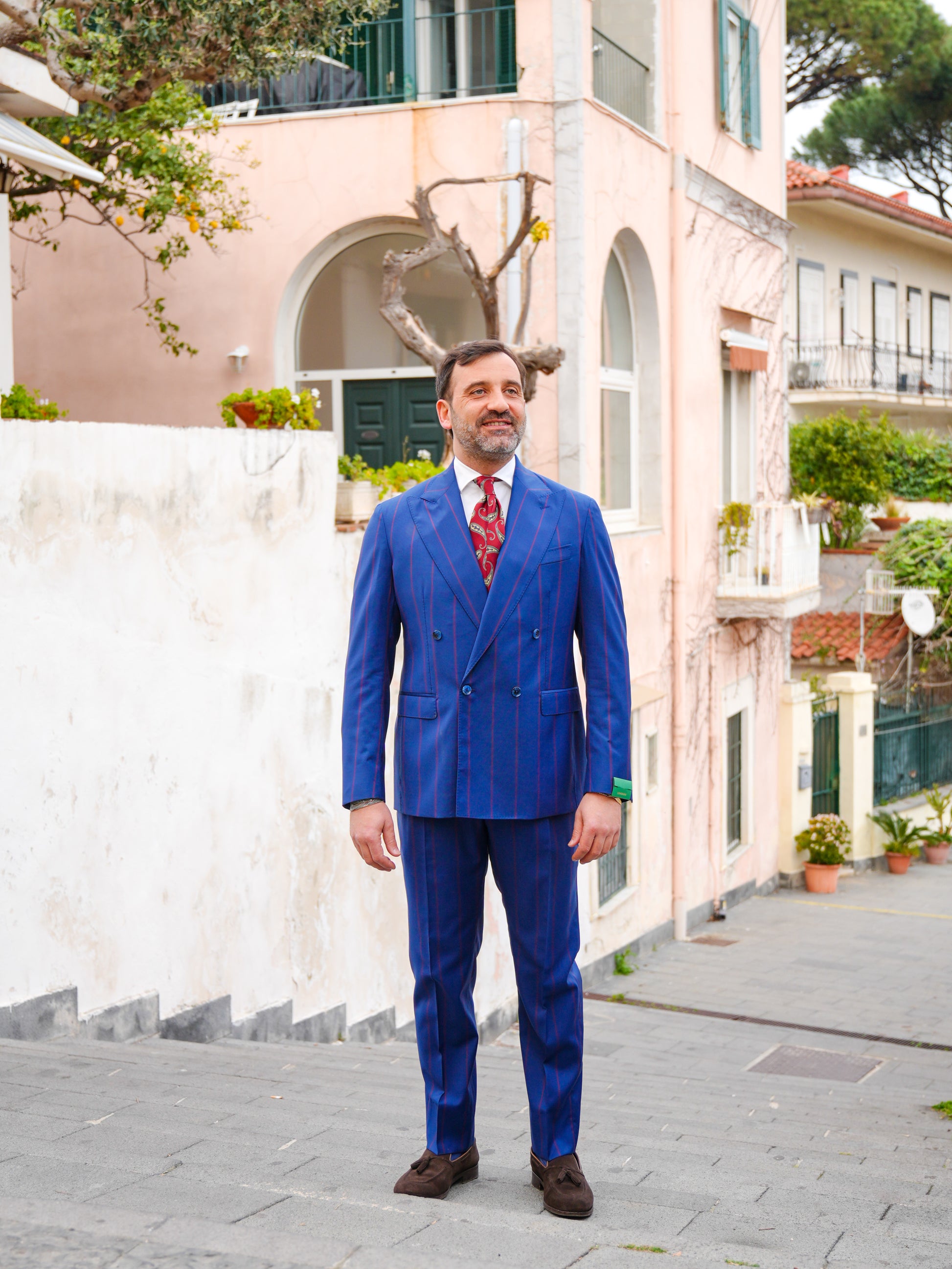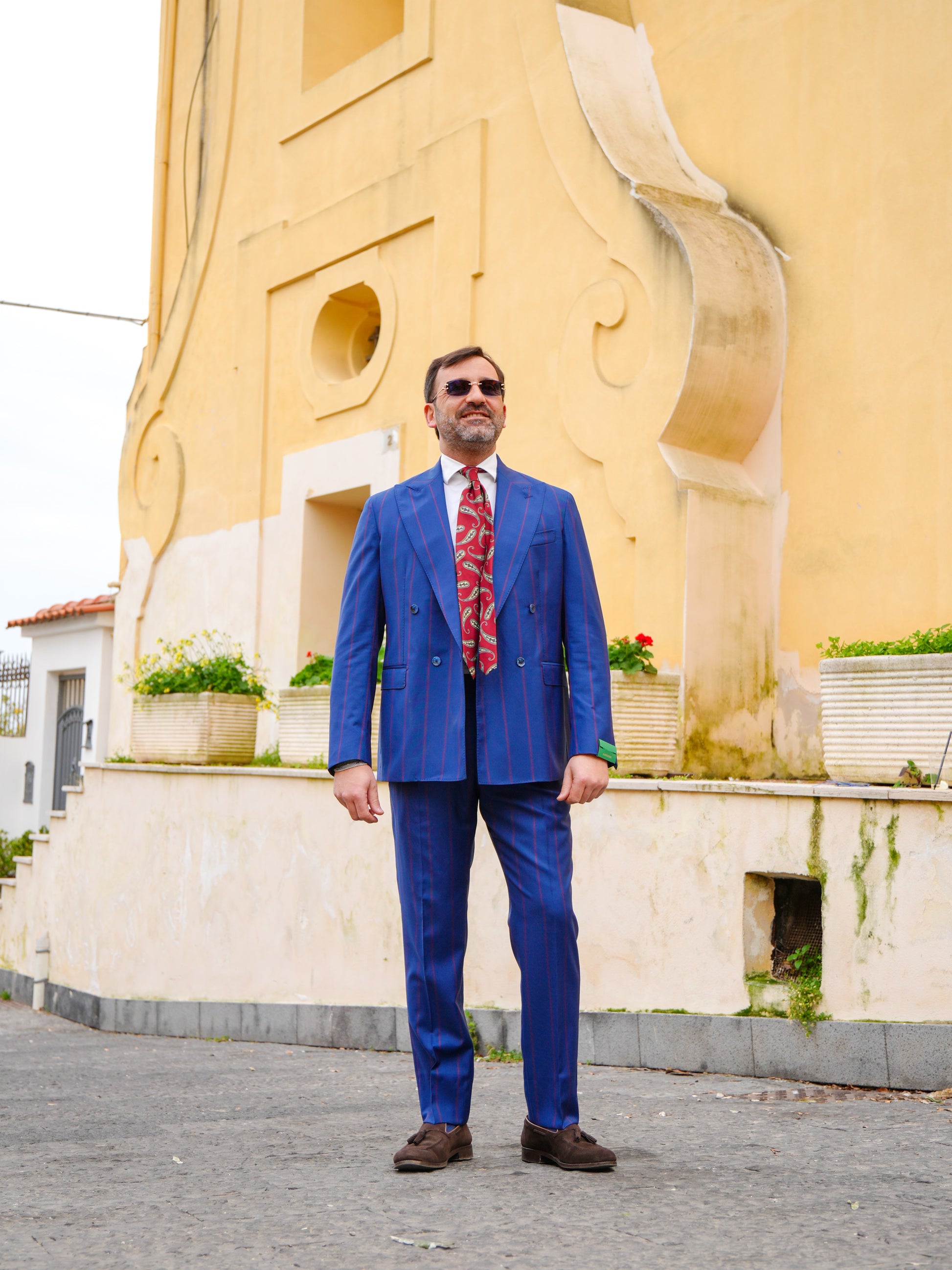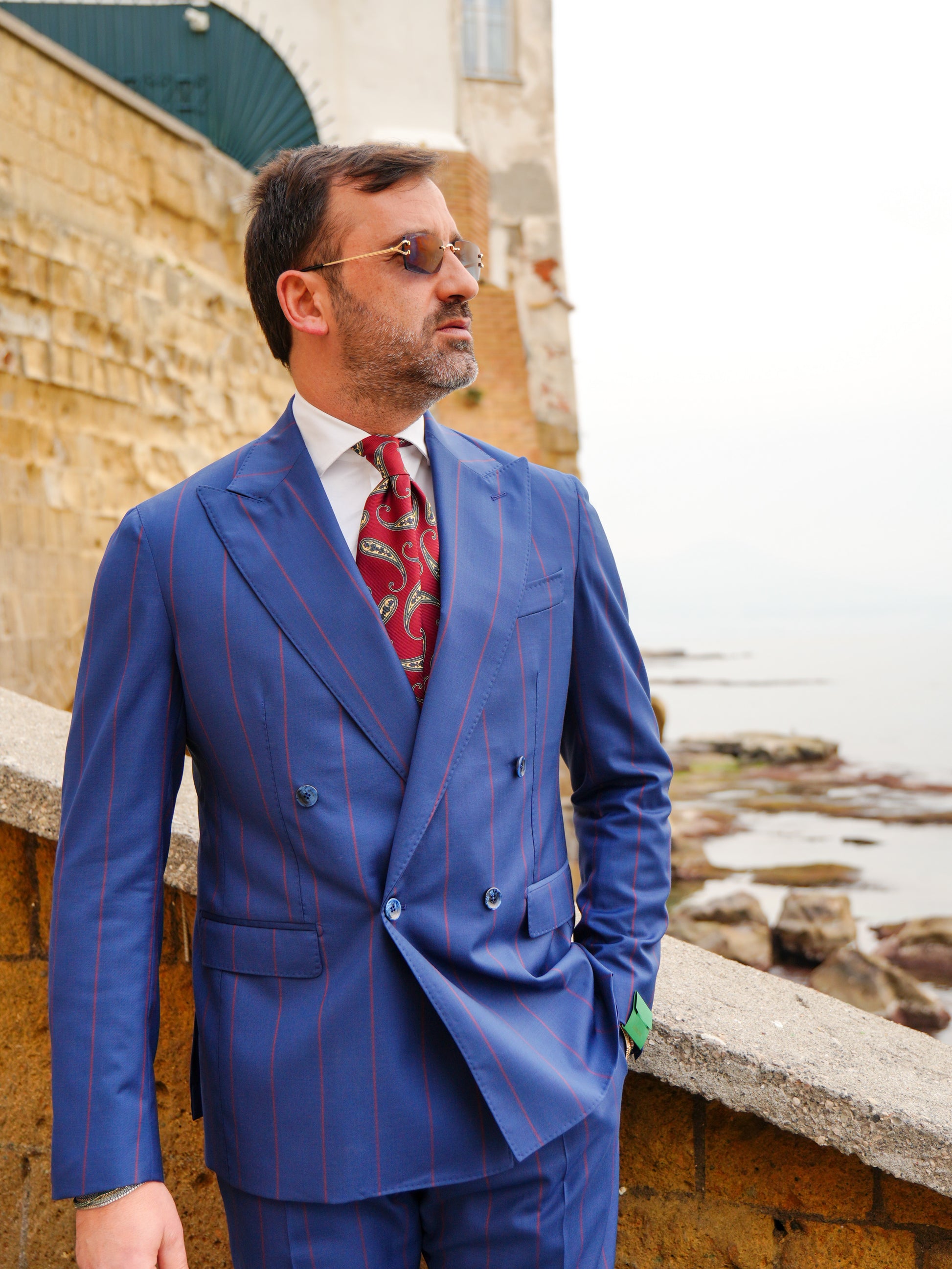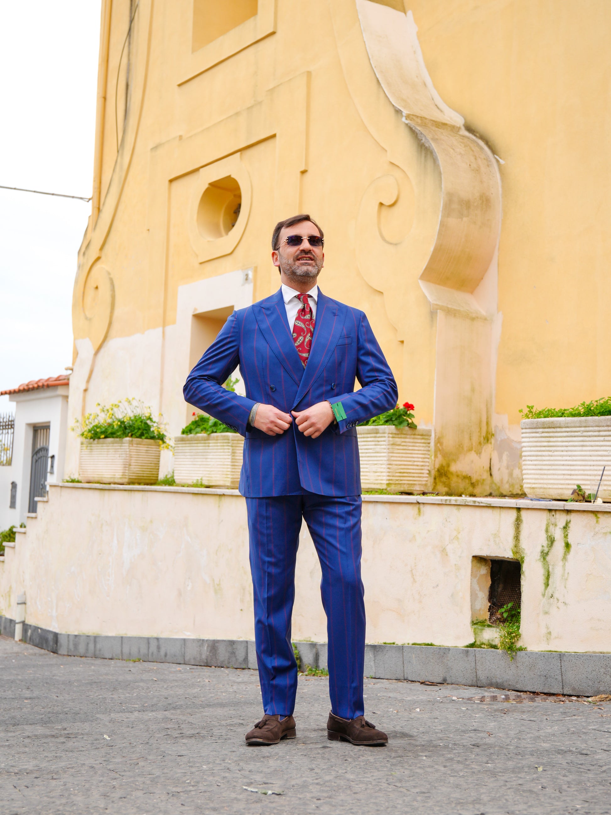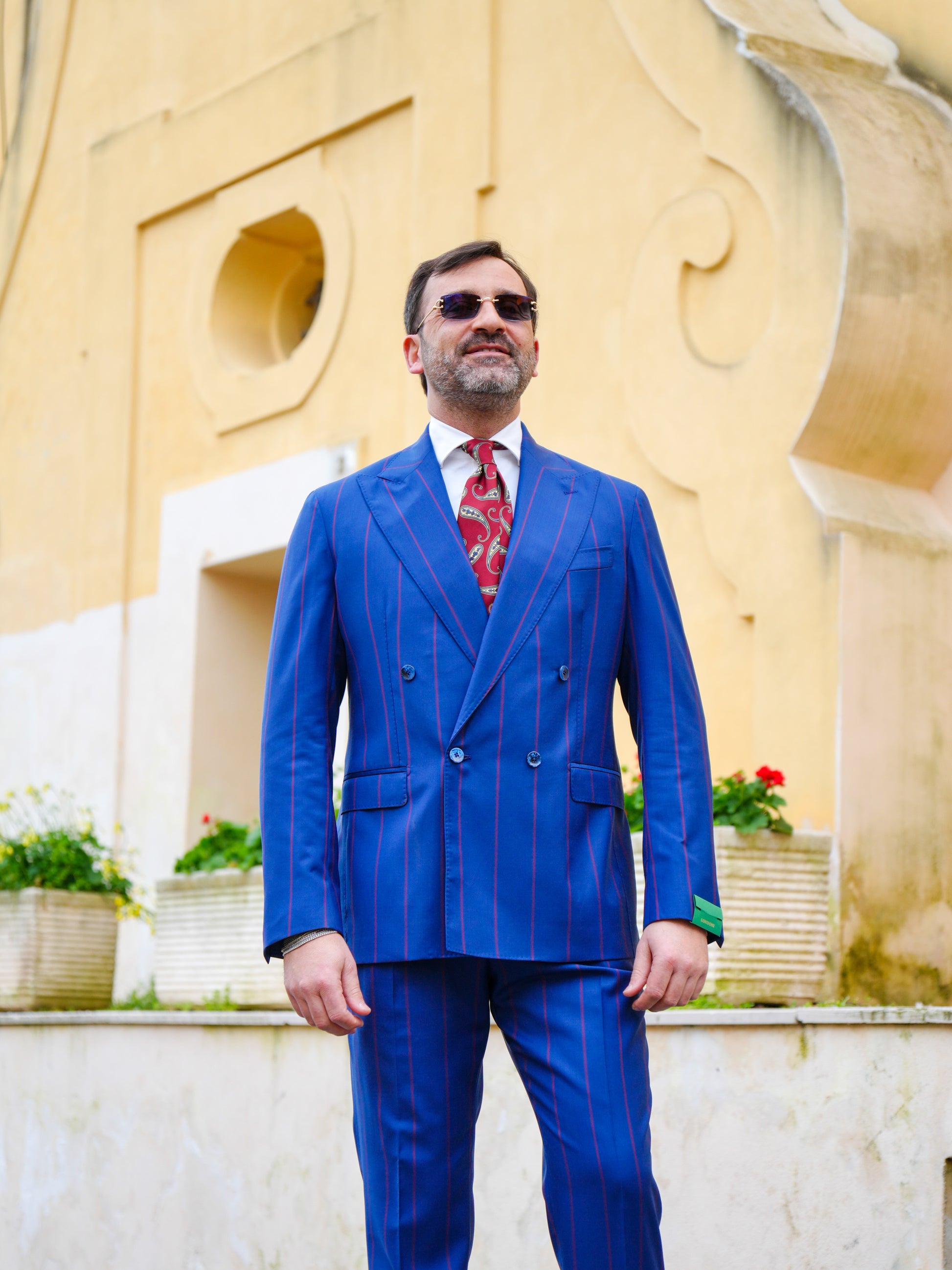 ABITO DOPPIOPETTO BLU RIGO ROSSO