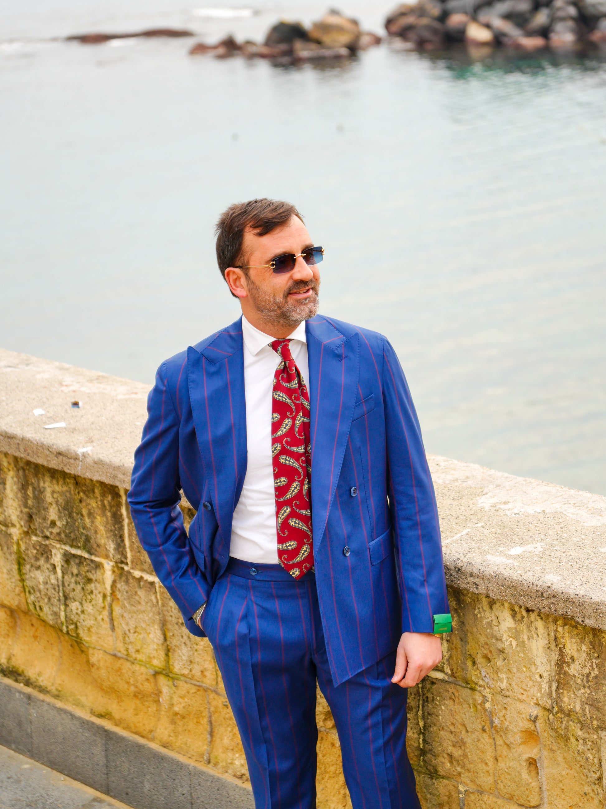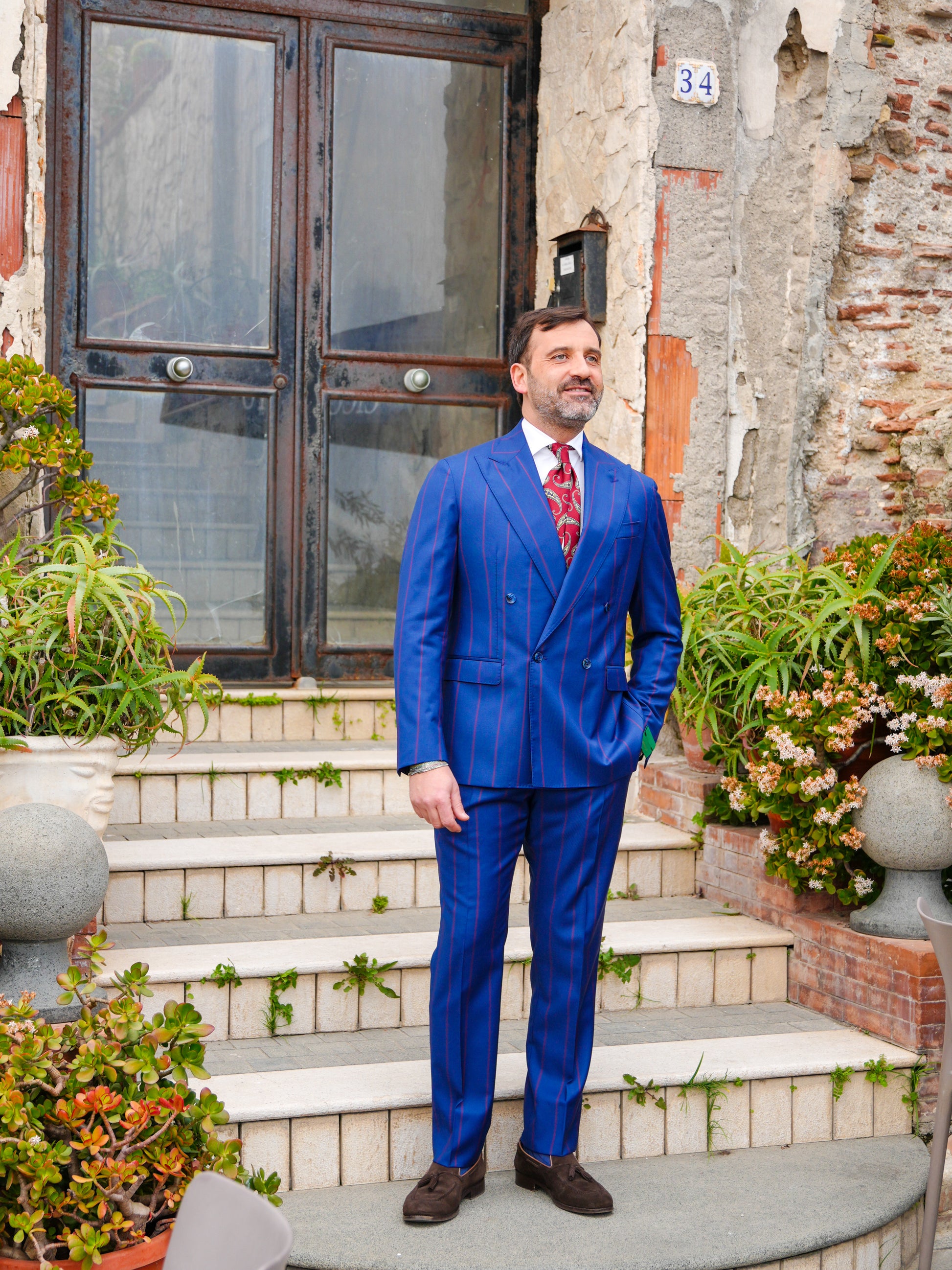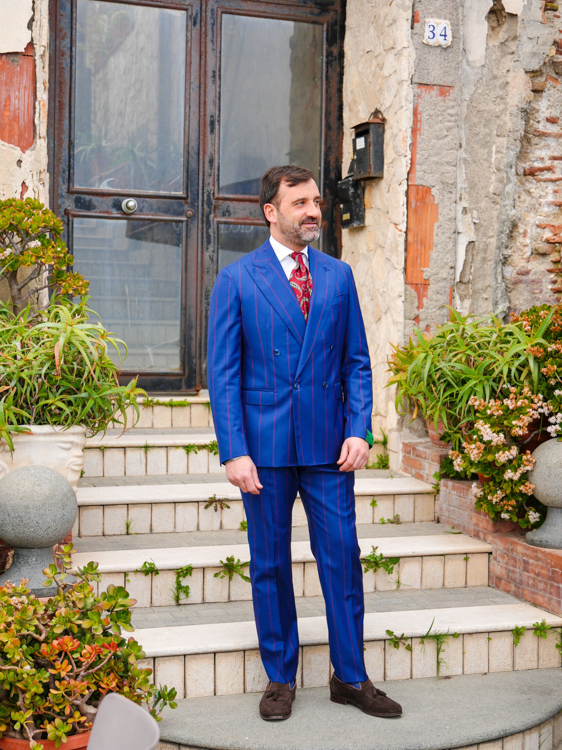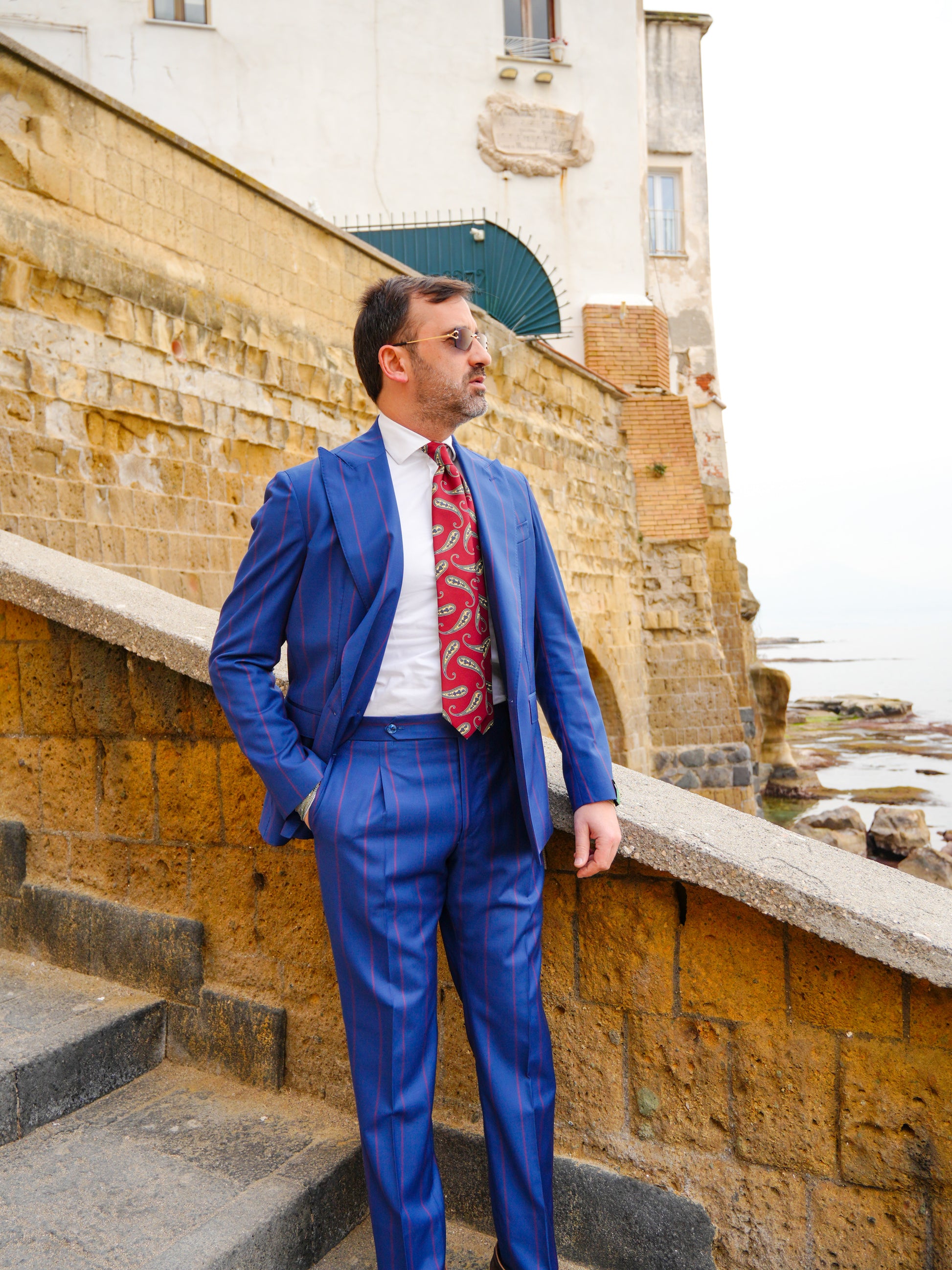ABITO DOPPIOPETTO BLU RIGO ROSSO