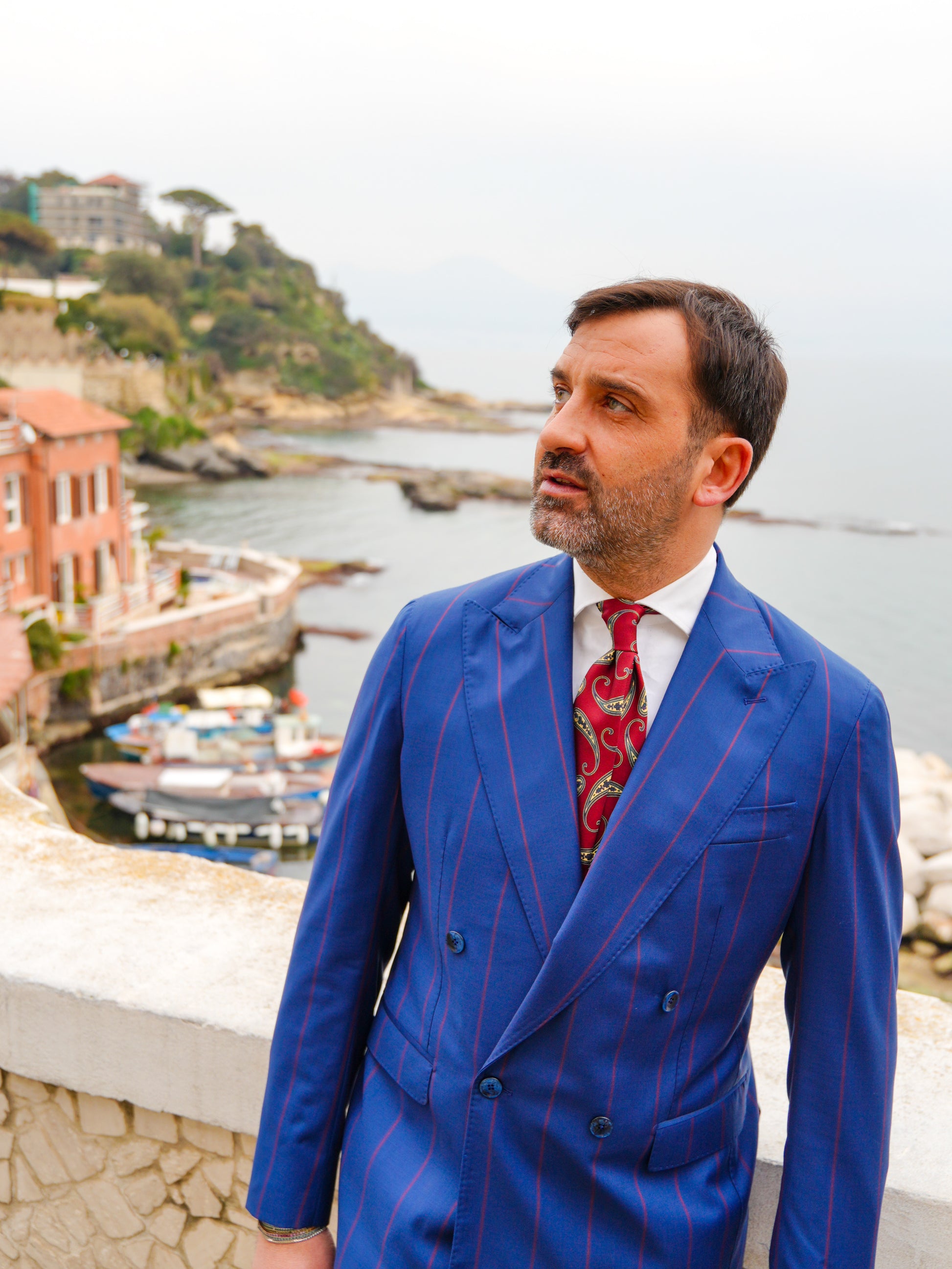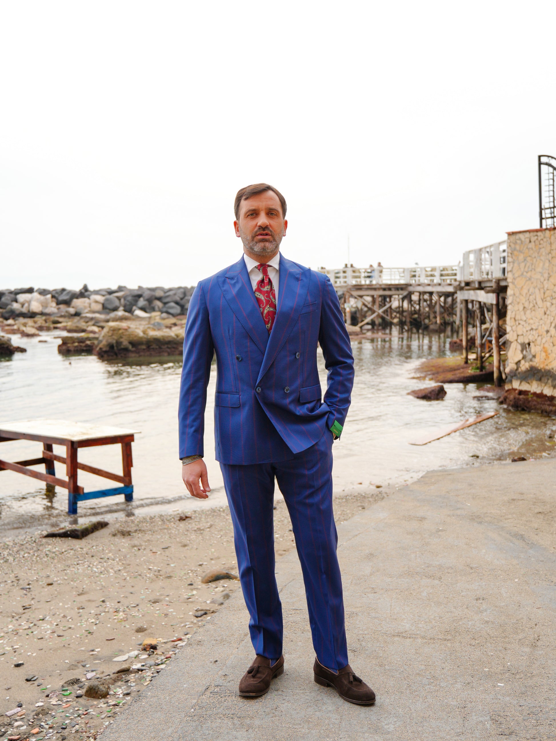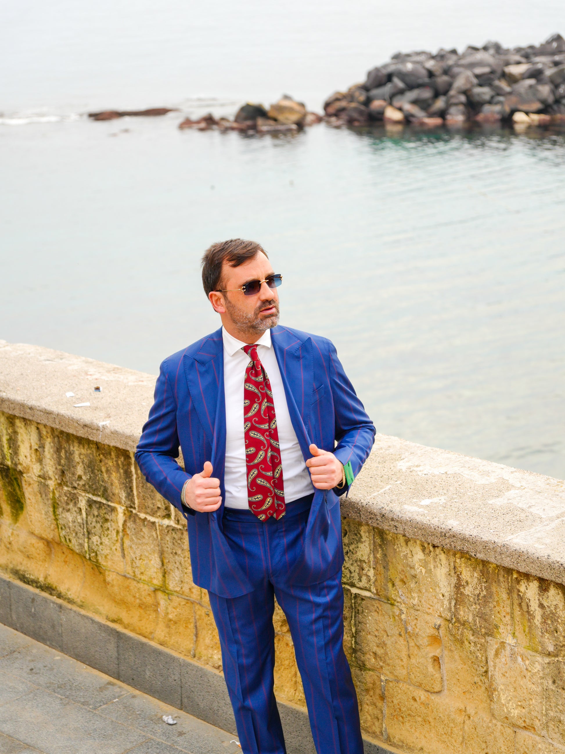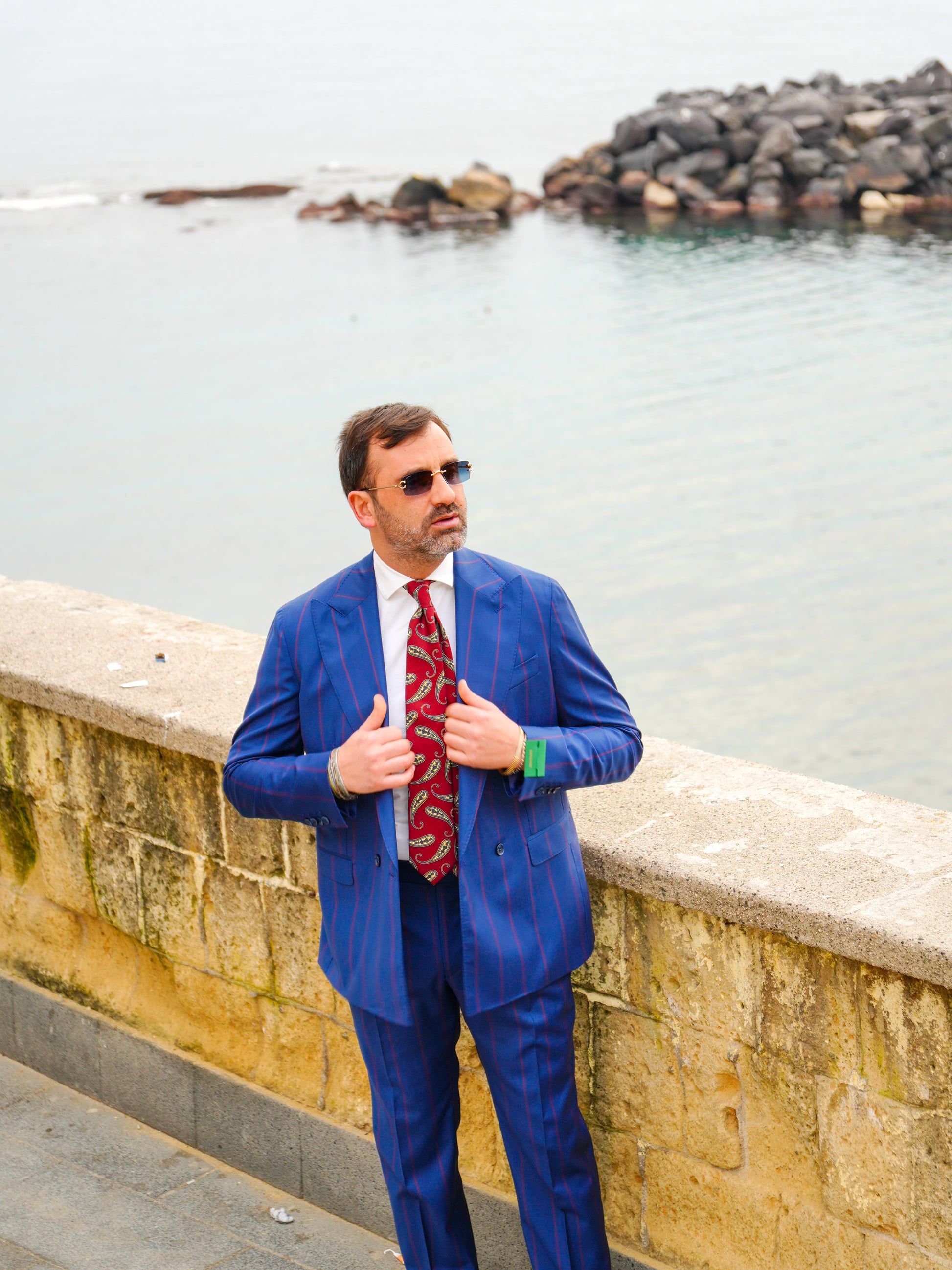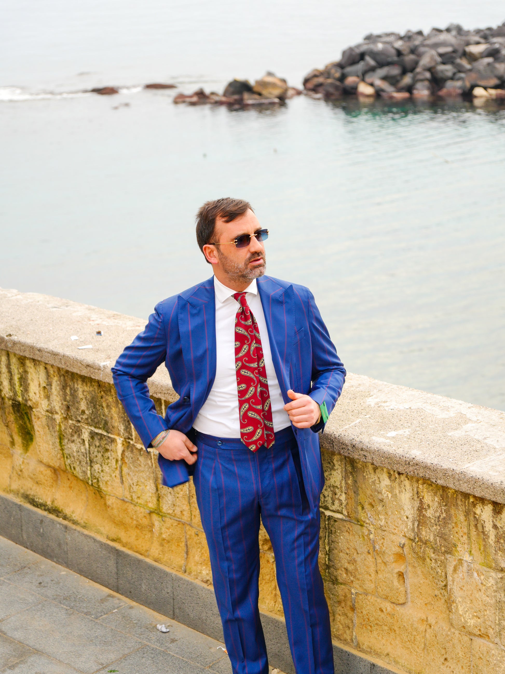ABITO DOPPIOPETTO BLU RIGO ROSSO