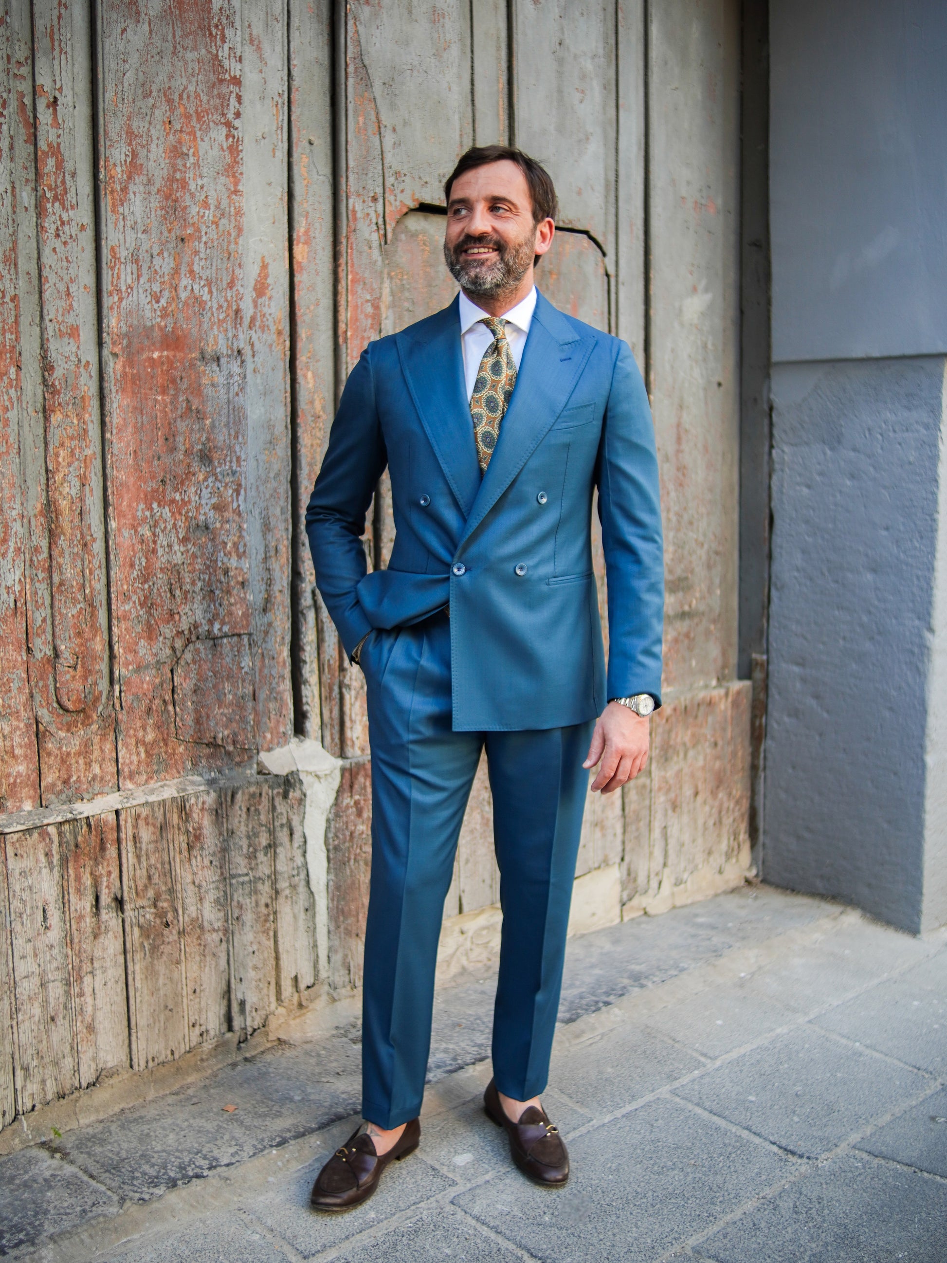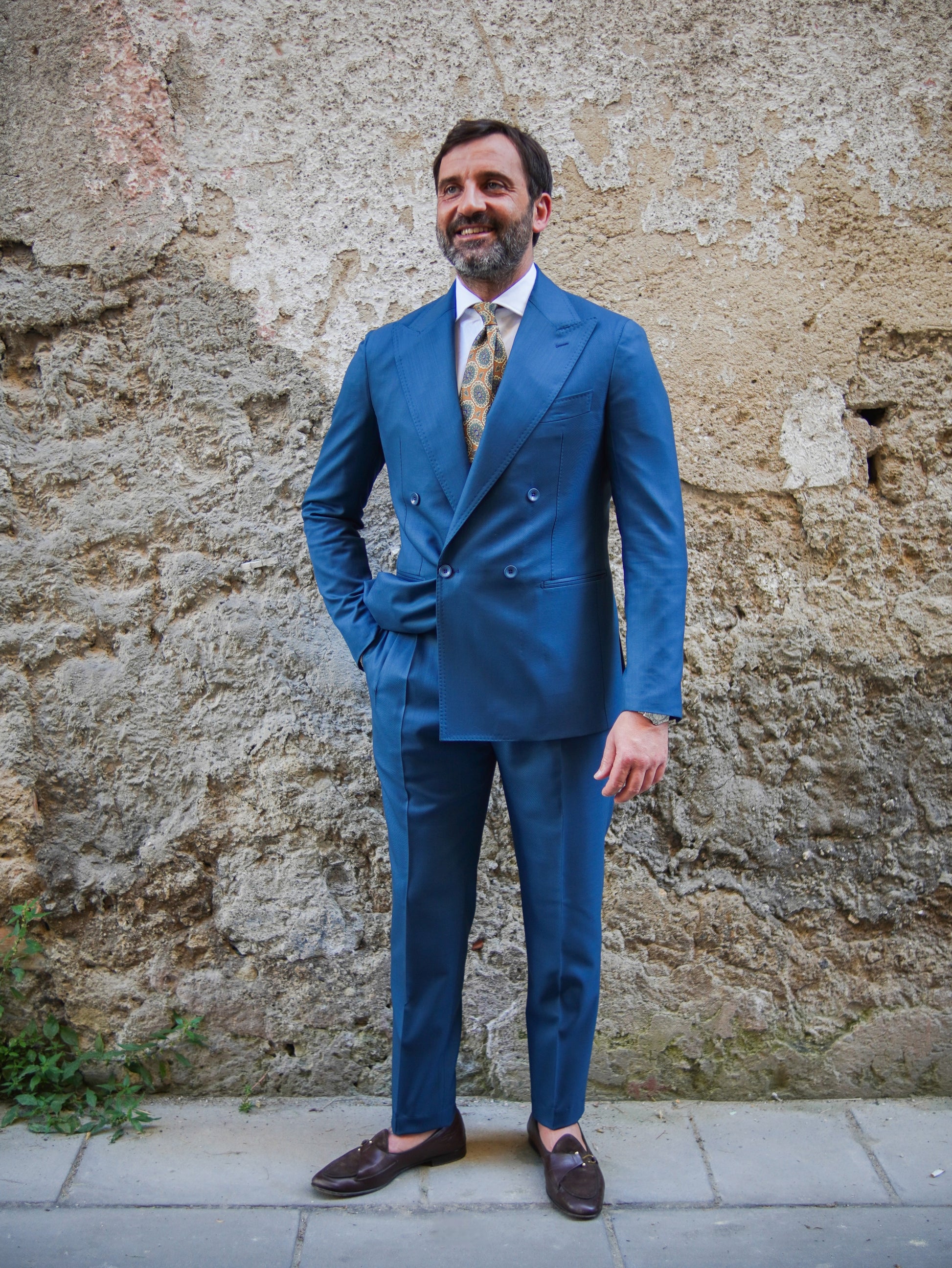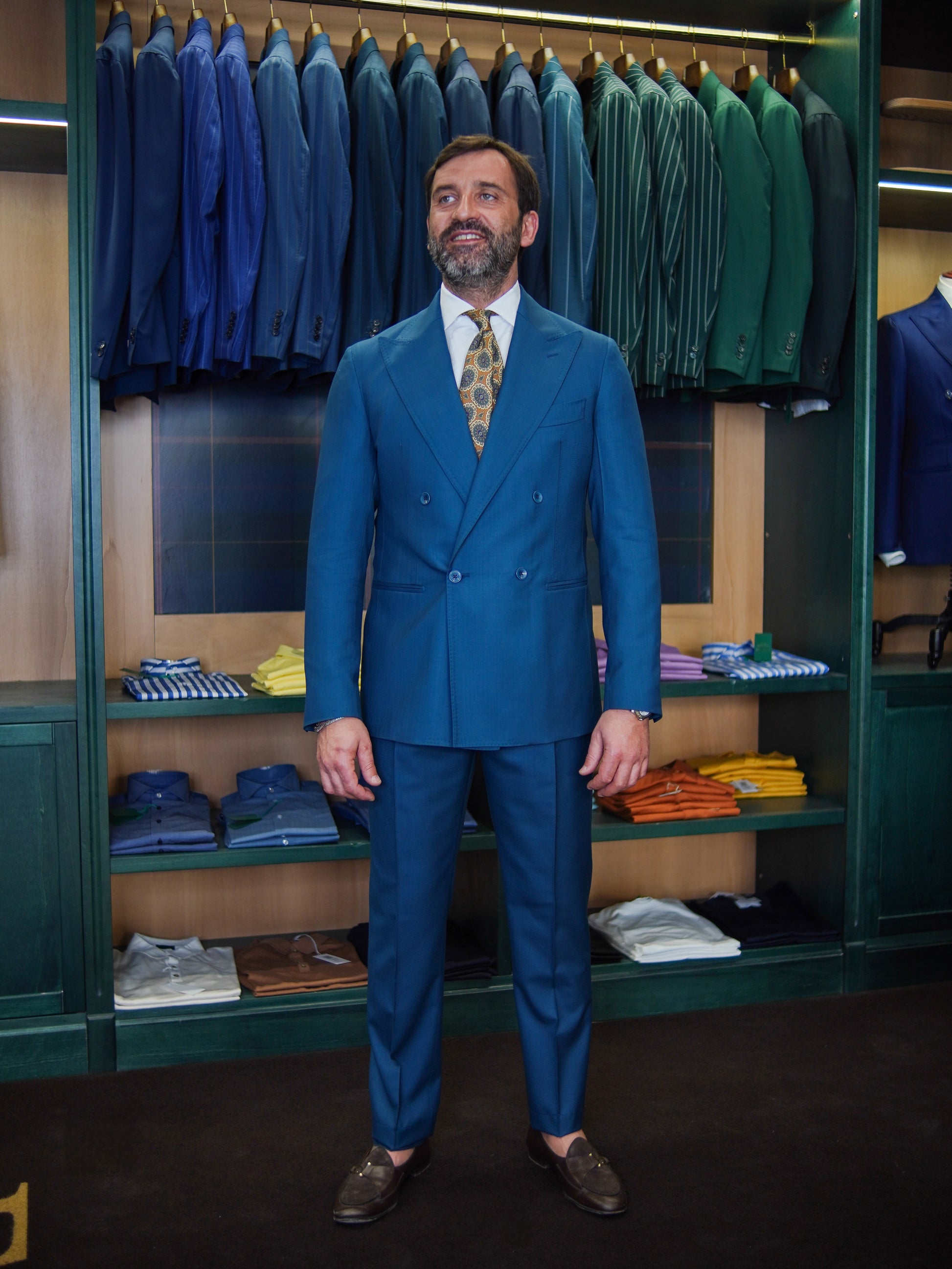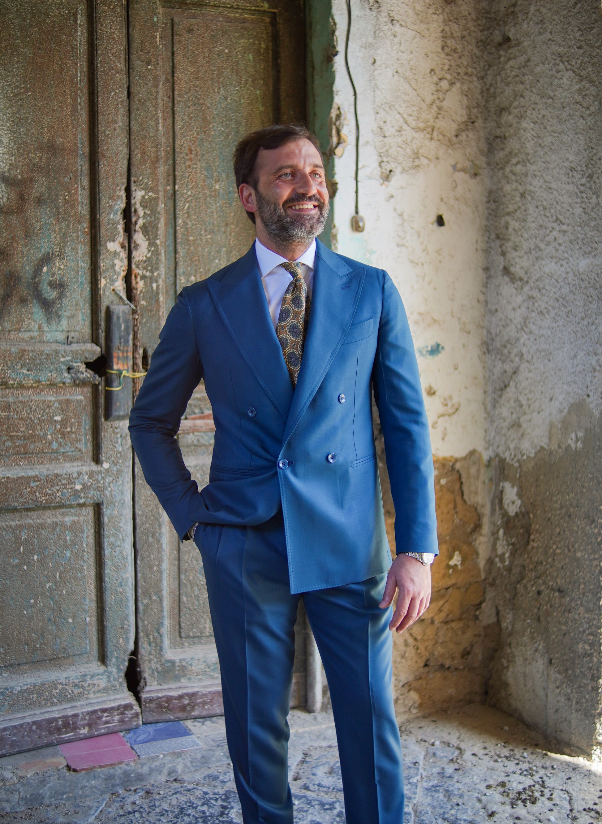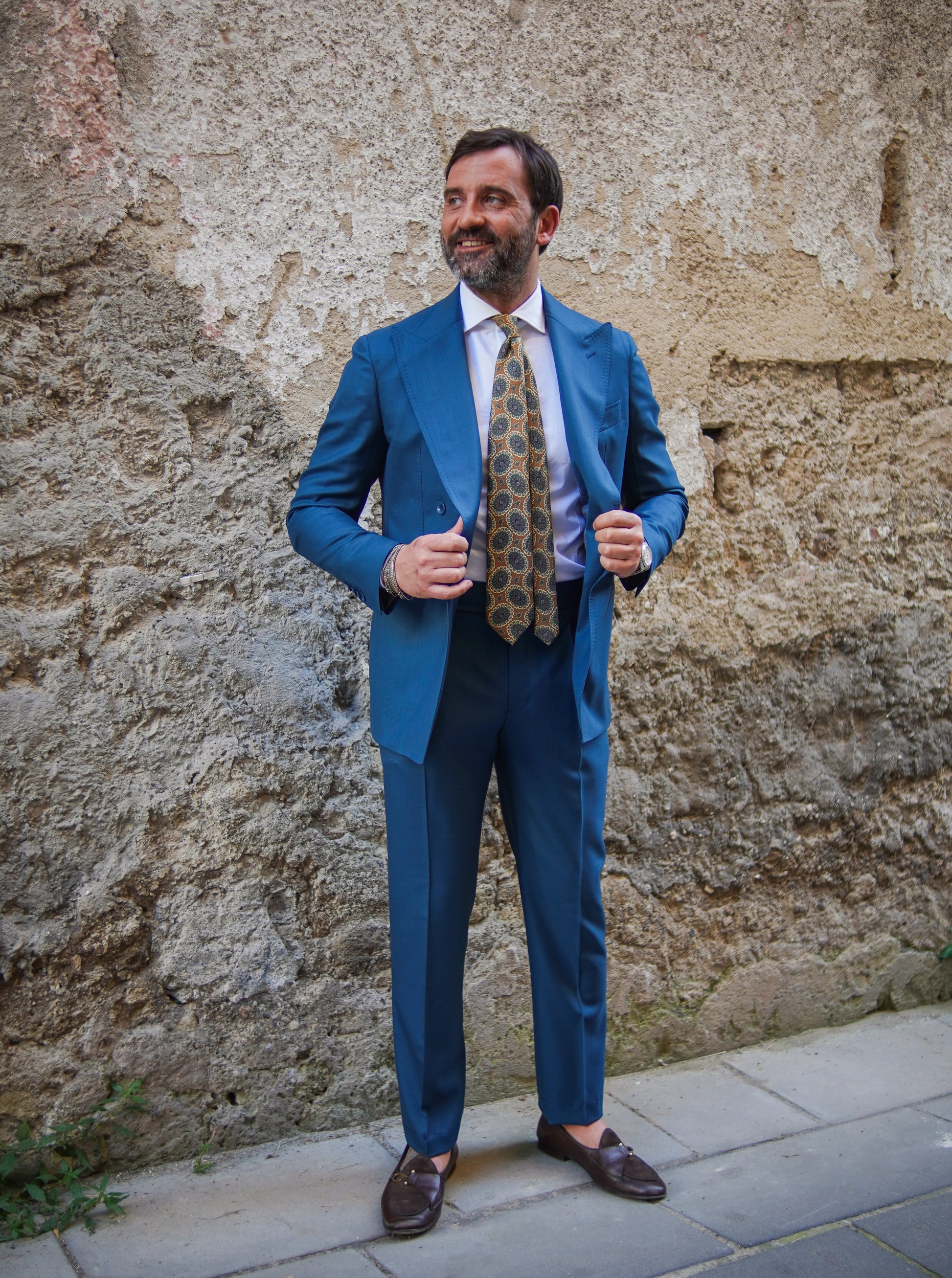 Pantalone tasca a filo doppia pinces con bustino 5 CM con chiusura quadrata, con fibbia e bottoni in madreperla laterale. Tasche più fintone impunturato.