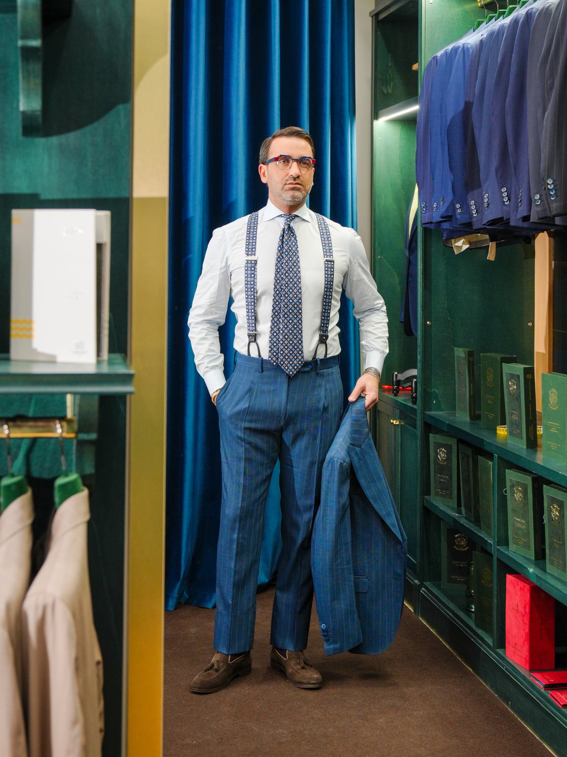 ABITO GESSATO MONOPETTO BLU CHIARO